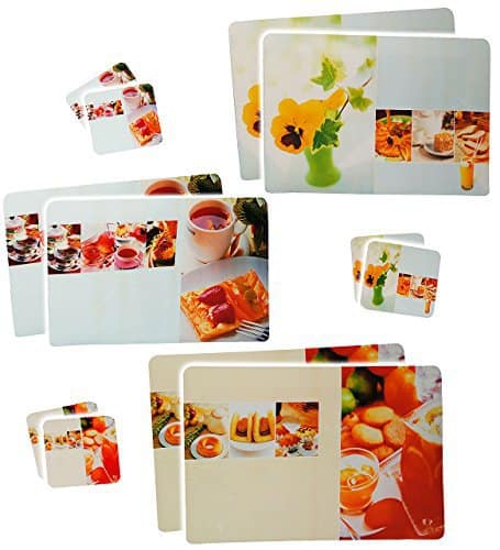 12 tlg. Set: Unterlage / Platzdeckchen – “ Frühstück / Süßigkeiten “ – 44 cm * 29 cm – Platzset mit Getränkeunterlage – Untersetzer – Tischunterlage / Malunterlage / Knetunterlage / Eßunterlage -für Kinder & Erwachsene – Mädchen Jungen