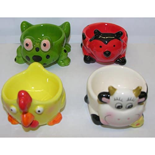 4er Set lustige Eierbecher Tiere aus Keramik Kuh, Huhn, Frosch, Marienkäfer SET